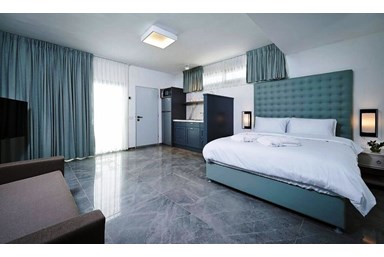 - 7 חדרי שינה מעוצבים, כאשר בכל חדר מיטה זוגית רחבה עם מצעים נעימים, ארון/שידות לאחסון, מסך lcd בכבלים ופינת ישיבה בחלק מן החדרים.